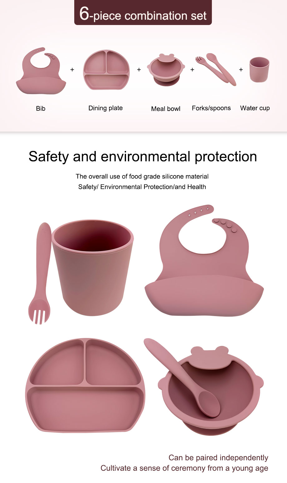 ·For the selection of tableware materials, we are serious. The entire set of tableware is made of food grade silicone material, which is soft, delicate, safe, environmentally friendly, healthy, anti drop, anti slip, not easy to wear, easy to clean.