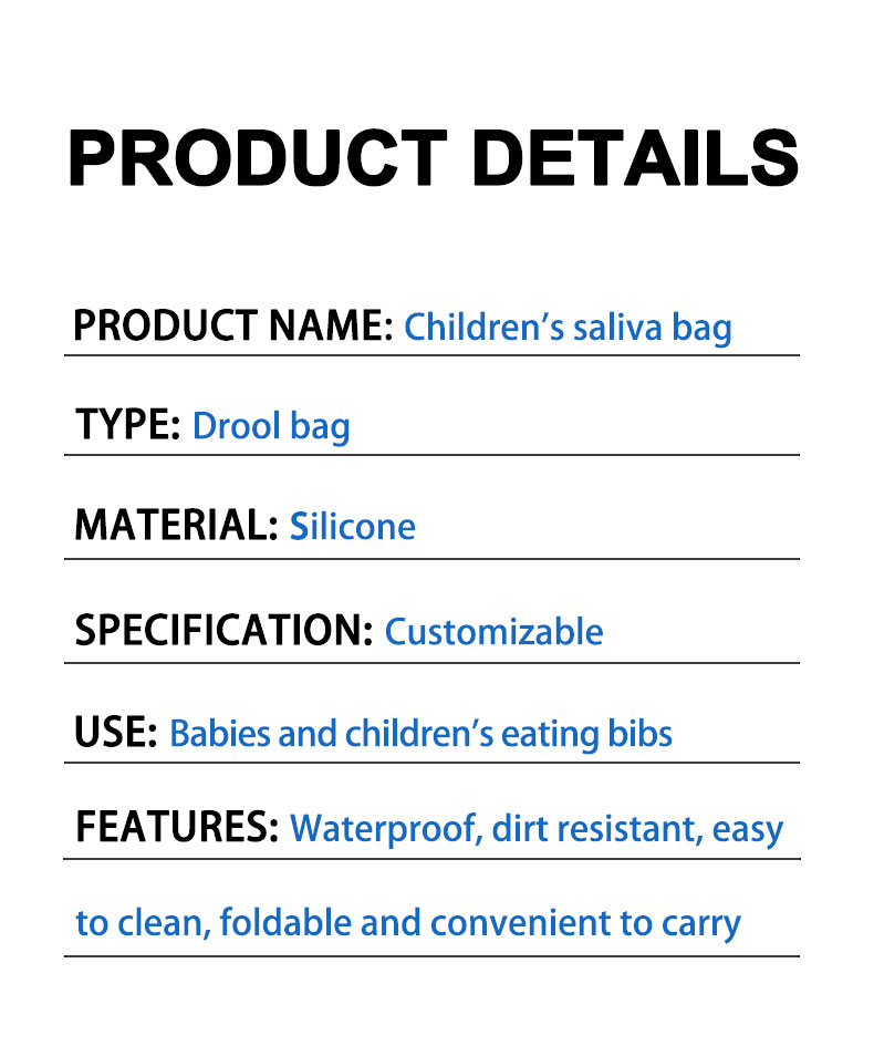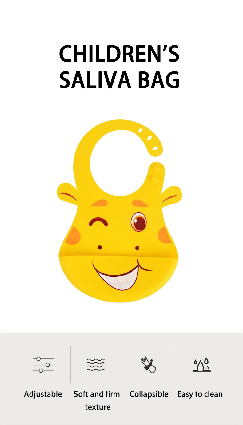 The children’s saliva bag is a waterproof, dirt resistant, easy to clean food bib, suitable for infants and children. The girdle is designed with three buckles, which can be adjusted according to the size of the neck, and the edges are round without restricting the neck. The raw material is made of silica gel, which is elastic, flexible and firm, and can not be broken by adults. This saliva bag can also be folded, which is very suitable for carrying out.