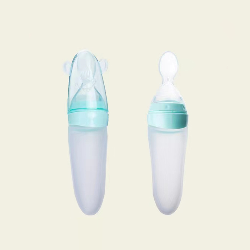 The baby complementary food bottle is made of food grade silica gel, which is flexible and firm. Color, pattern and size can be customized. If you need to customize, please contact us.
