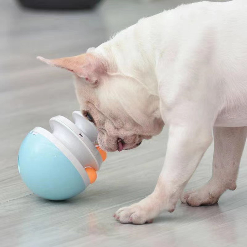 This product is a feeding toy ball that can let pets consume excess energy and exercise pets. Open the top cover of the toy ball and put in food. When the pet touches the toy ball, or when the pet plays with the toy ball, the toy ball will leak out food for the pet to eat.
