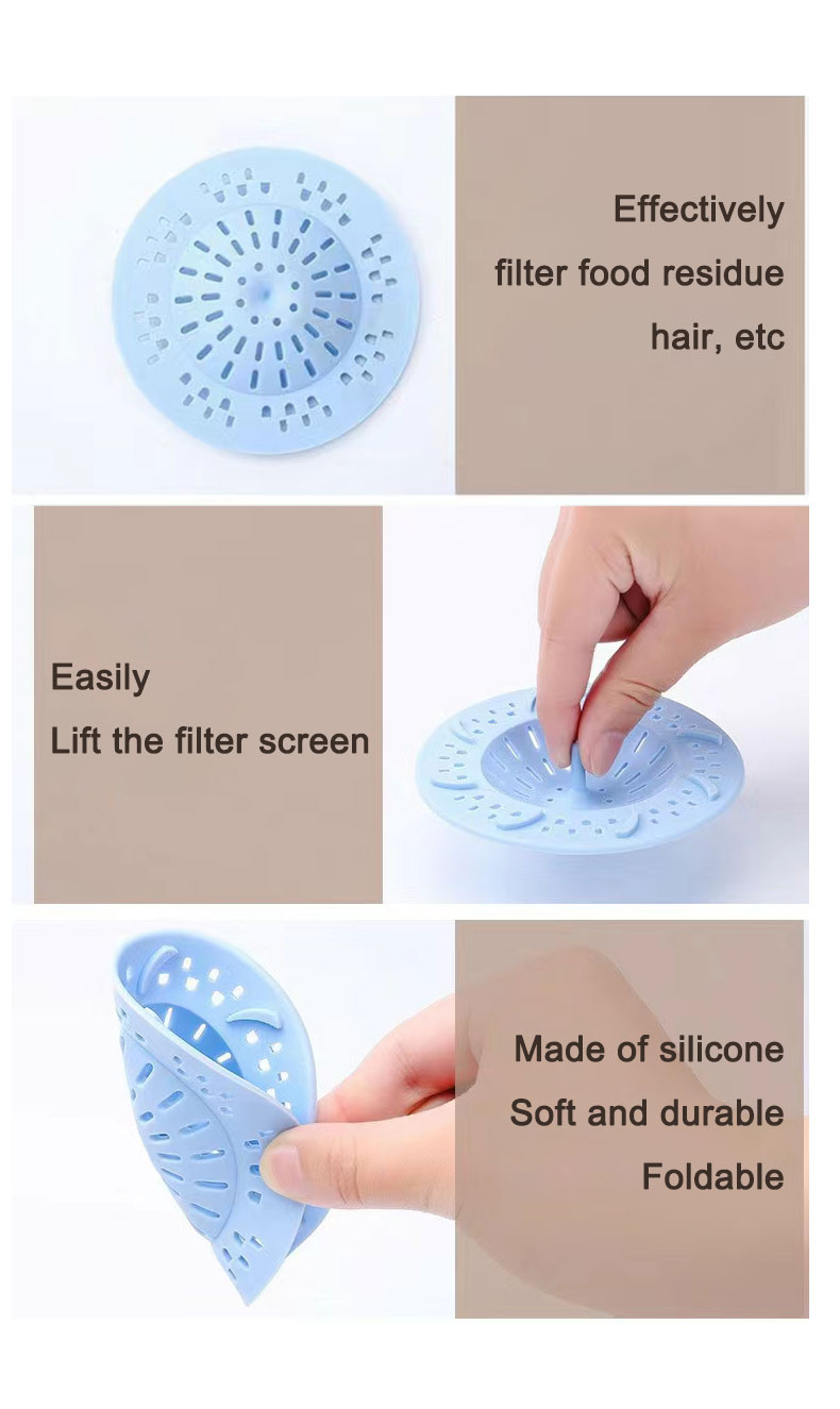 This floor drain is made of silicone, soft and durable, and foldable. It can effectively filter food residue, hair, etc., and it is easy to lift the filter without dirtying your hands.