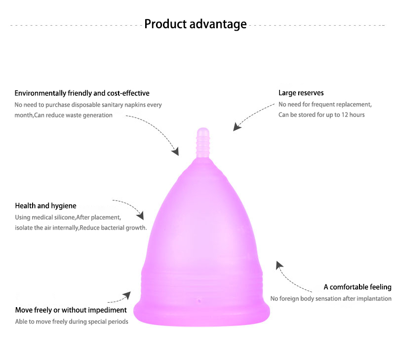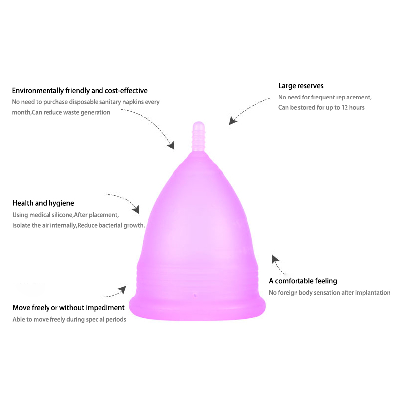 Menstrual cup is a menstrual product that is inserted into the vagina to collect menstrual blood. The shape conforms to ergonomics and matches the structure of the vaginal cavity. It is made of medical silicone material, which is basically safe. Its material is soft and elastic, non-toxic, tasteless, healthy, hygienic, and not easy to cause allergies. It can be recycled and can replace the female products of sanitary napkins Tampon.